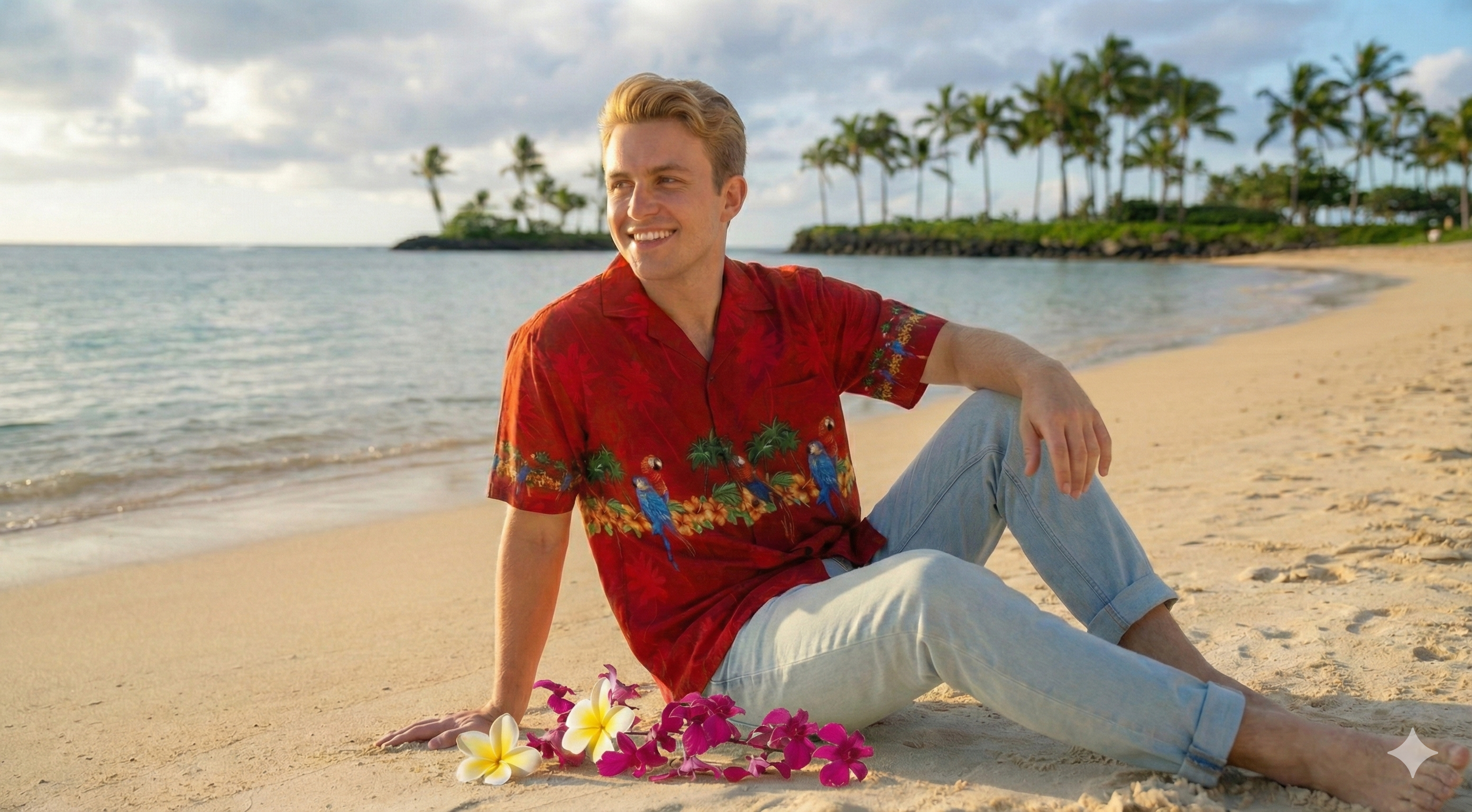Men's Classic Island Treasure Coral Hawaiian Aloha Cruise Luau Shirt